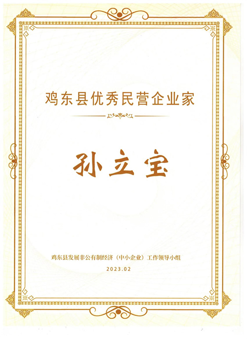 2月22日,在鸡东县发展非公有制经济(中小企业)工作领导小组授牌表彰了星空买球·(中国)官方网站“鸡东县就业突出贡献优秀民营企业”“鸡东县投资突出贡献优秀民营企业”“鸡东县产值突出贡献优秀民营企业”“鸡东县社会突出贡献优秀民营企业”、总经理孙立宝获得“鸡东县优秀民营企业家”称号。